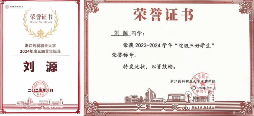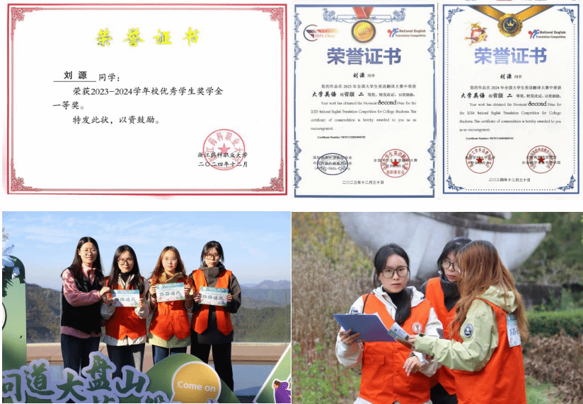 学业上,刘源始终保持“争先”姿态:平均绩点4.08稳居专业前列,牢筑专业根基,曾获浙江省政府奖学金、校优秀学生一等奖学金。她更将“学以致用”融入竞赛实践当中。作为项目负责人,她带着团队扎进浙籍69家中医药百年老字号的调研中——走访50余家店铺,和200多位传承人、管理者促膝长谈,整理成详实的研究报告。这份扎根基层的努力,最终帮她拿下了浙江省第十九届“挑战杯”红色专项赛道省级金奖。此外,她连续两年获得全国大学生英语翻译大赛省级二等奖。在刚刚落幕的“问道大盘山·好药出磐安”2025年“大盘山杯”全国大学生寻药比赛中,她所在的团队,凭借扎实的专业功底和精湛的实践能力,从众多高校队伍中脱颖而出,最终荣获二等奖。对她来说,“学好专业”从来不是为了一纸分数,而是为了有能力做更多实事。