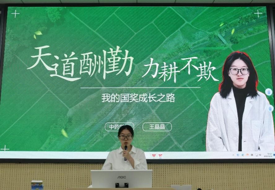 图2:国家奖学金获得者王晶晶同学分享她的浙药成长故事