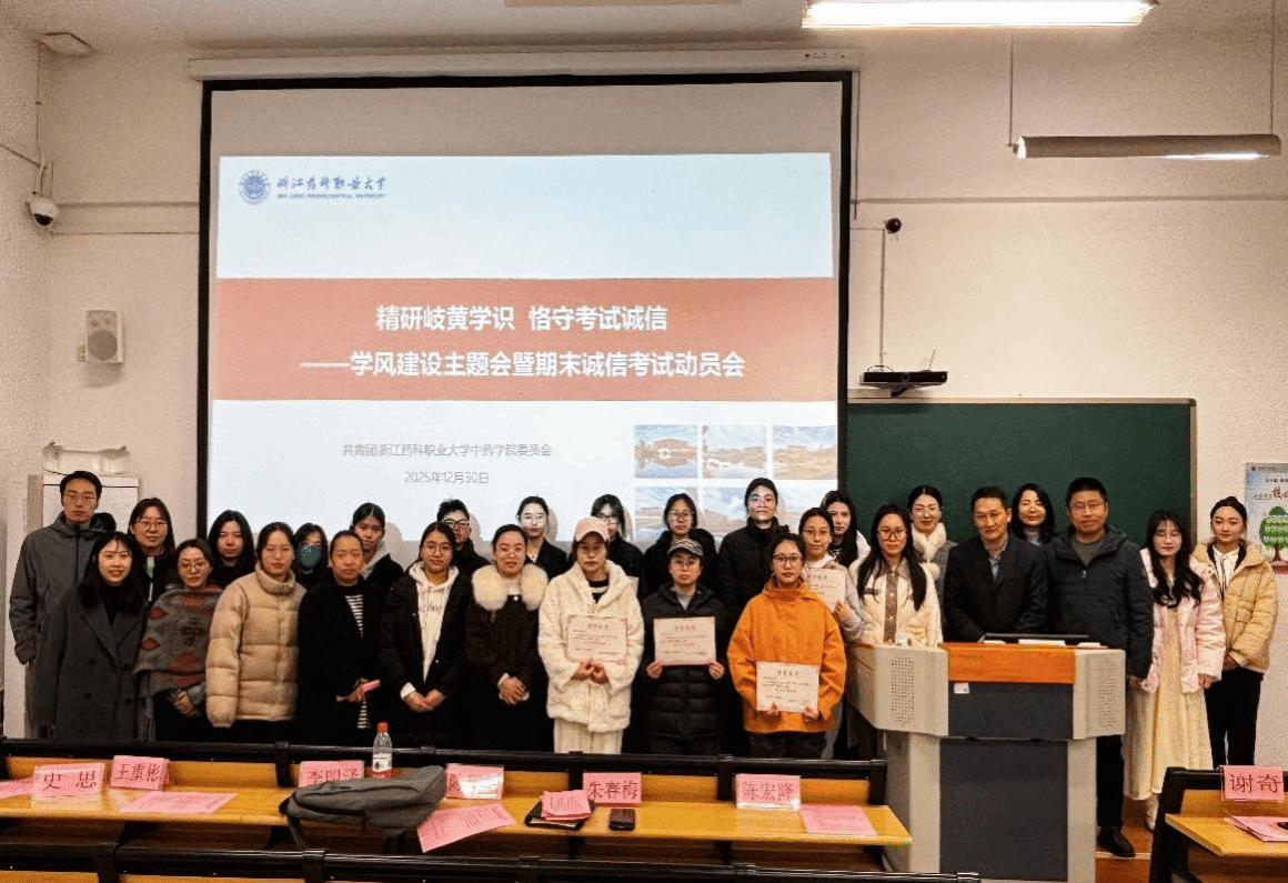 “学习不仅是我们掌握知识技能的途径,更是塑造我们价值观、增强思维意识和提升解决困难能力的过程。新时代的青年学子唯有笃学笃行,才能收获成长、收获快乐。期末迎考,我们务必要增强规矩意识,用我们优异的表现向学院交出一份诚信考试的高分答卷。”中药学院党委书记谢奇在学院2025年度下半年诚信考试教育大会上说到。