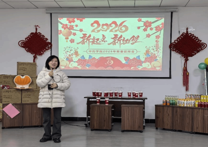 岁暮暄和,佳节渐临。2026年1月28日,中药学院在奉化校区5#实验楼温情举办2026年新春团拜会。学院全体教职工欢聚一堂,在温馨祥和的气氛中,共话奋斗、同迎新春。此次团拜会在学院顺利完成整体搬迁背景下举办,更显意义特殊,既是对过往一年勤勉耕耘中药人礼赞,亦是全体中药人勠力同心在全新环境中凝聚共识、携手前行的温暖起点。