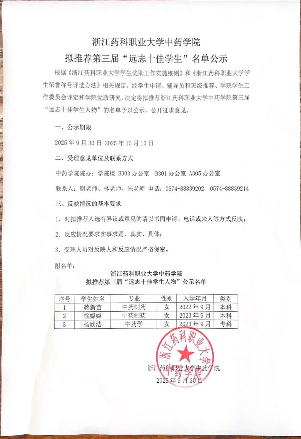 下一条:浙江药科职业大学中药学院拟推荐2024-2025学年国家奖学金学生名单公示