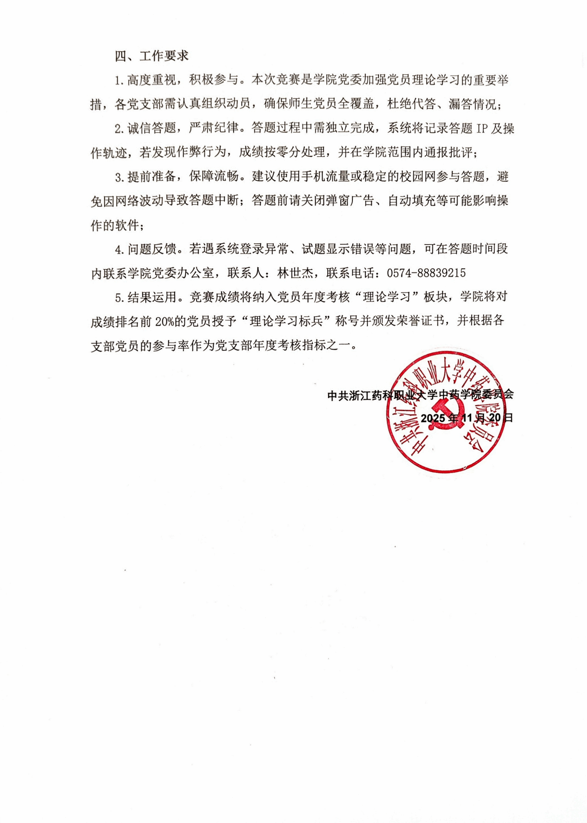 上一条:浙药大中药联2025年05号文件——关于成立浙江药科职业大学中药学院实验室安全工作领导小组的通知