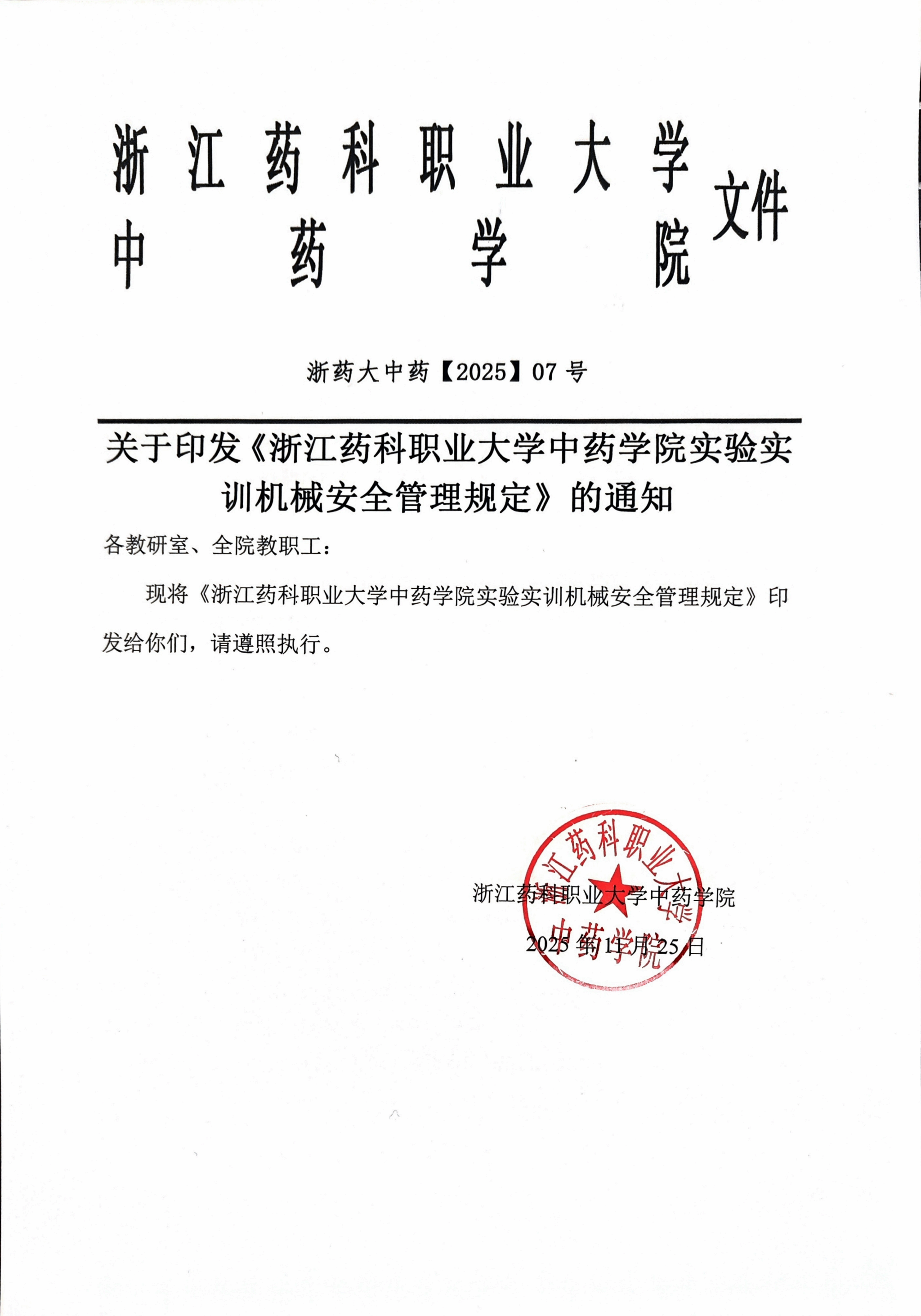 上一条:2025年08号文件 关于印发《浙江药科职业大学中药学院实验实训室安全管理办法》的通知
