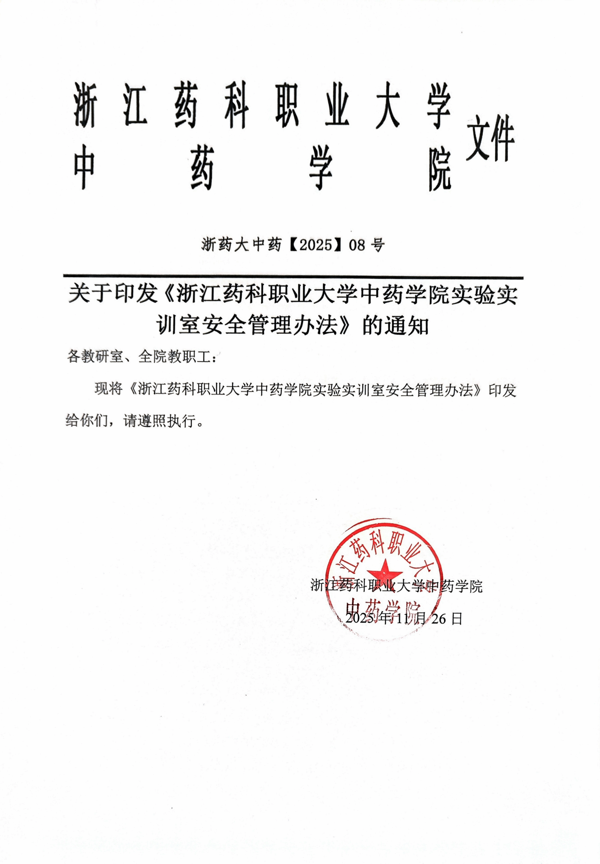 下一条:2025年07号文件 关于印发《浙江药科职业大学中药学院实验实训机械安全管理规定》的通知