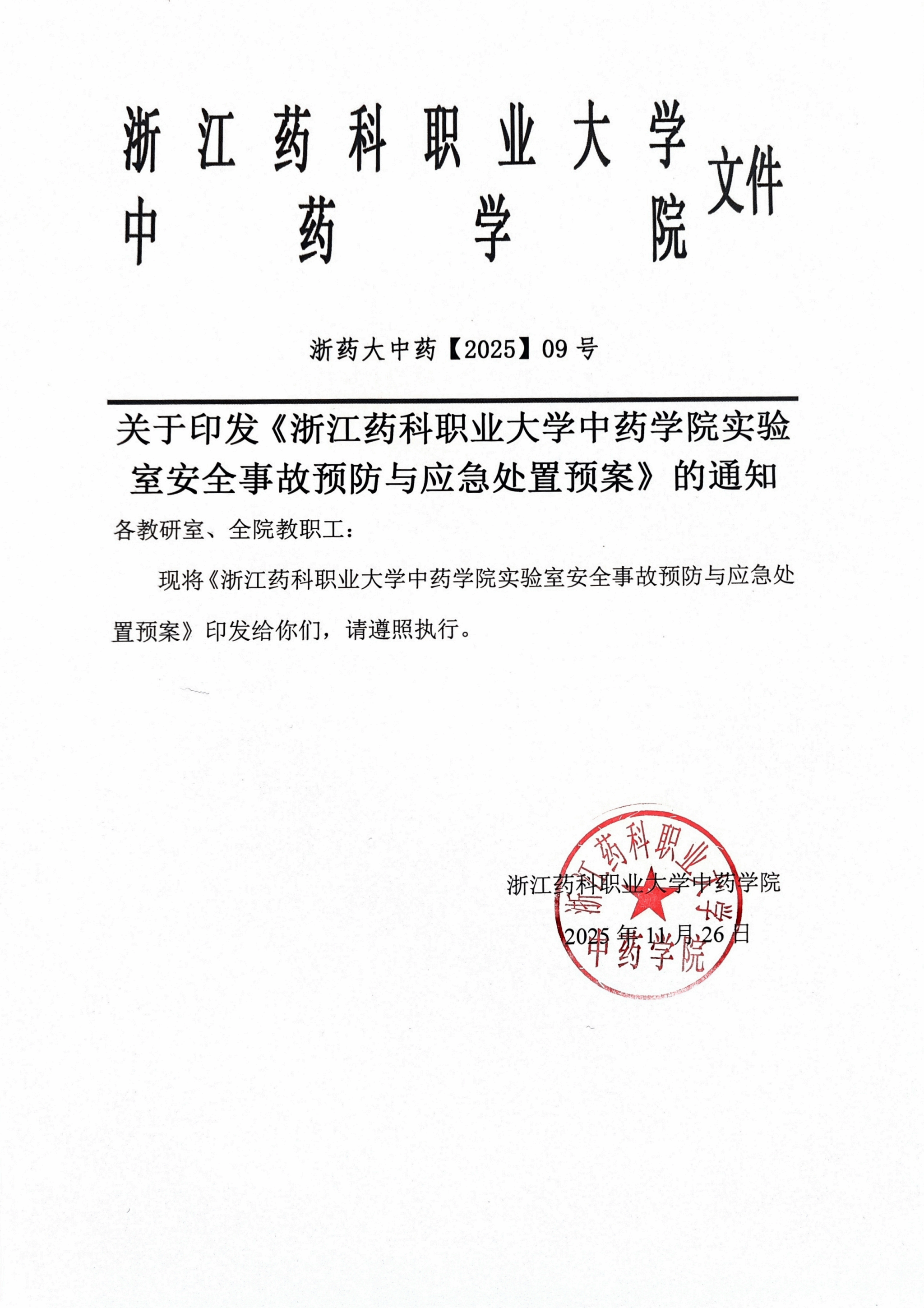 下一条:浙药大中药联2025年05号文件——关于成立浙江药科职业大学中药学院实验室安全工作领导小组的通知