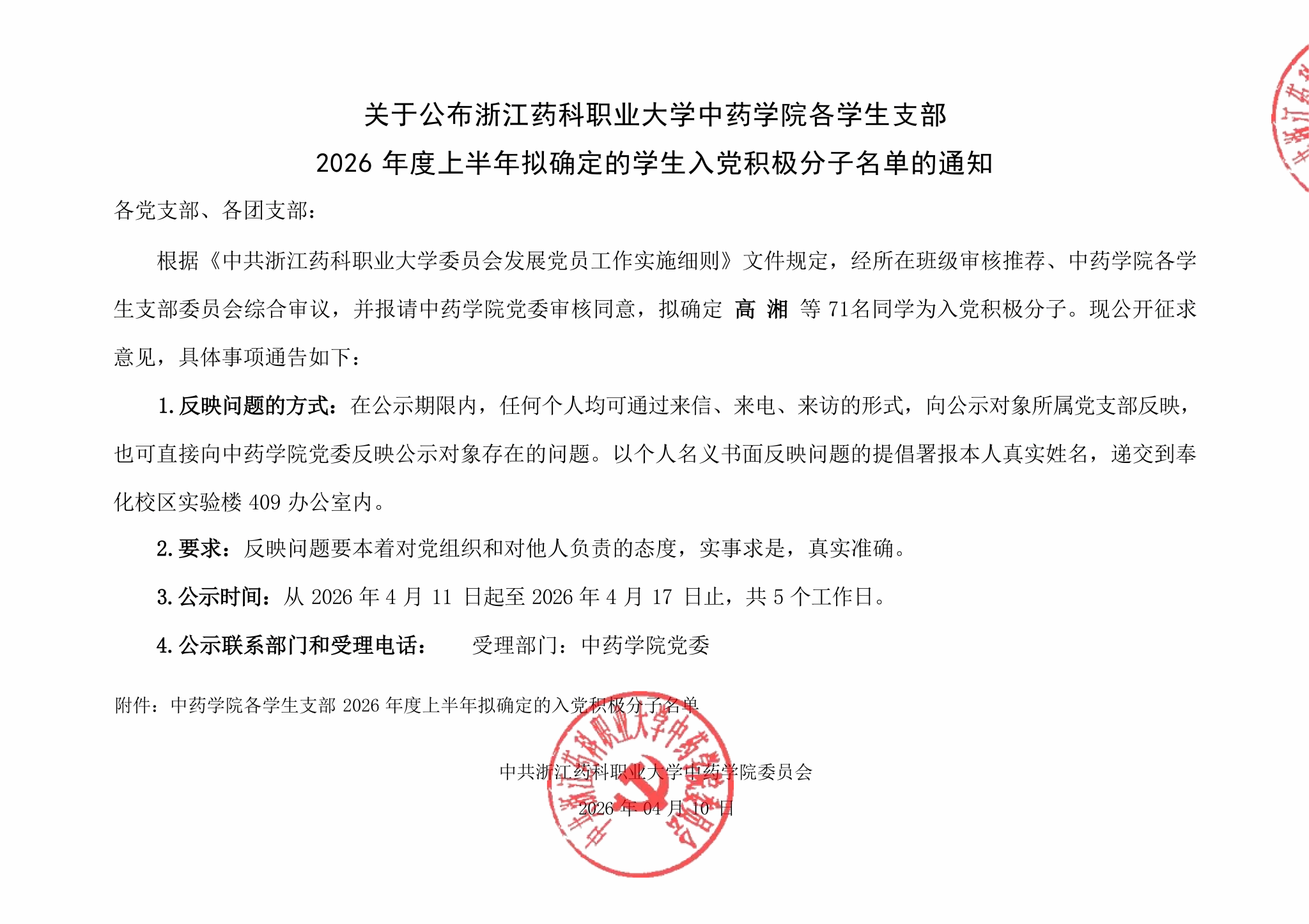 上一条:浙药大中药党2026年10号文件关于任命关于任命马舒伟同志担任中药学院“磐安现代中药产业学院”建设办公...